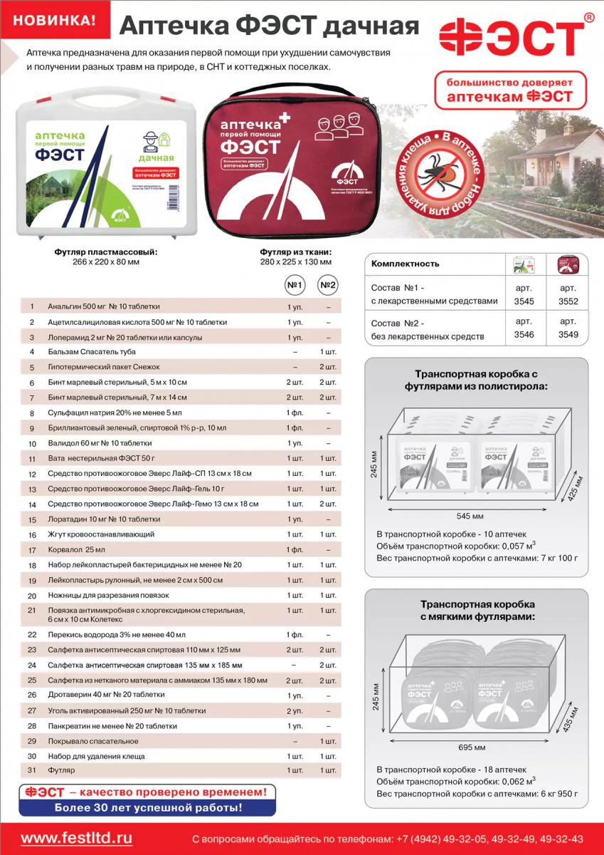 Аптечка представляет собой футляр с набором лекарственных препаратов и медицинских изделий.