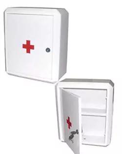 Навесной металлический футляр для хранения медикаментов может использоваться на любом предприятии или в производственном помещении. Согласно нормативной документации все подобные объекты должны быть оснащены аптечками первой помощи, медикаменты из перечня которых могут храниться в этом футляре.
