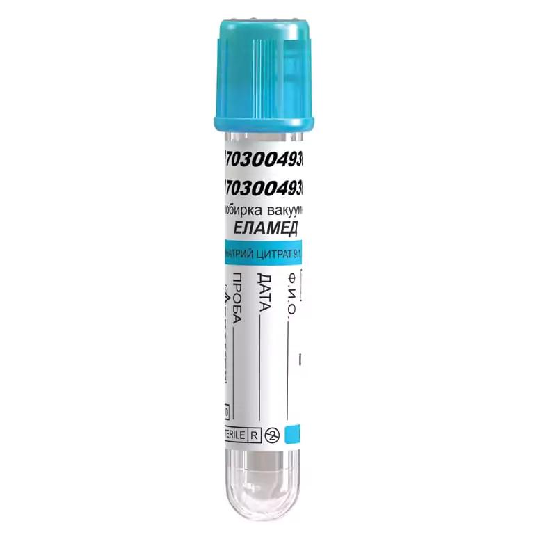 Пробирки ЕЛАМЕД для исследования свертывания крови содержат забуференный раствор тринатрий цитрата. Доступны концентрации цитраты 0,109 моль/л (3,2%) или 0,129 моль/л (3,8%). Выбор концентрации зависит от политики лаборатории. Соотношение кровь-реагент – 9:1.