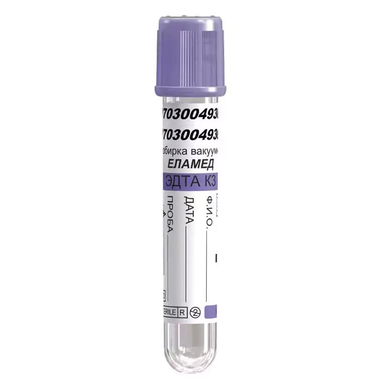 Пробирки ЕЛАМЕД с ЭДТА используются для анализов цельной крови в клинической лаборатории. Пробирки с ЭДТА К2 и К3 можно использовать для рутинного иммуногематологического анализа, например определения групп крови, резус-фактора и скрининга антител, а также для определения вирусных маркеров в скрининговых лабораториях.