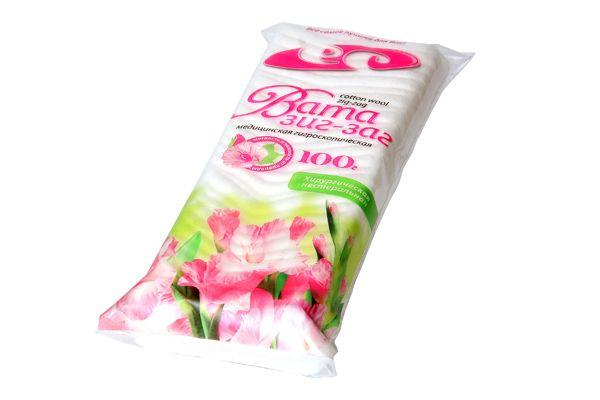 Вата Зиг-Заг хлопковая медицинская гигроскопичная изготовлена из 100% натурального, длиноволокнистого хлопка самого высокого качества - "Премиум" (в котором полностью отсутствуют ватный пух и любые сорные примеси). В отличие от обычной рулонной ваты которая скручена в ролик, вата "Зиг-Заг" прочесана в однослойную ленту и равномерно и удобно уложена в индивидуальную упаковку. При таком особом методе укладки - вата Зиг-Заг потребитель отрывает нужное количество ваты от ватной ленты, не затрагивая остаток, находящийся в пакете что позволяет сохранять основную массу от загрязнения, запыленности, инфекции. Сверху на полиэтиленовый пакет нанесена перфорация для удобства открывания. Выпускается вата зиг-заг расфасованной по: 50, 100, 200 и 250 грамм. Состав ваты Зиг-Заг: 100 % хлопок Срок годности не ограничен.
