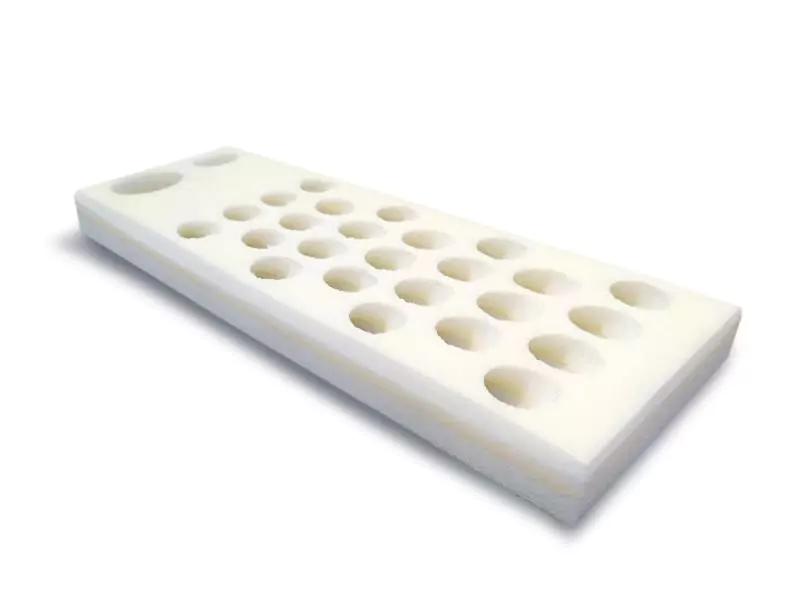 Ложемент обеспечивает полный набор мест для ампул, ампулы ориентированы вертикально, не «звенят» и не бьются.