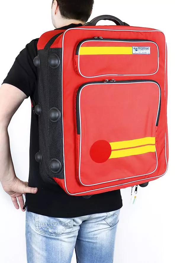 Рюкзак изготовлен из современной прочной ткани ПВХ, оснащен широкими крепкими ручками и мягкими ремнями регулируемой длины. Конструкция изделия предусматривает несколько съемных модулей, которые можно использовать как самостоятельные укладки. Изделие имеет гибкий каркас, позволяет рационально распределять нагрузку на позвоночник.