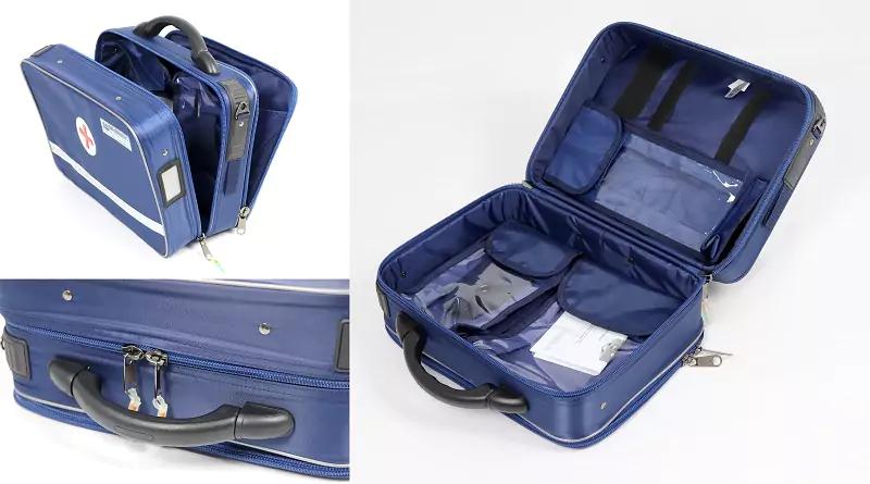 Одного медицинского набора достаточно для помощи нескольким пострадавшим. Все материалы эргономично размещены в мягком практичном чемодане синего цвета с укрепленным корпусом, выполненном из прочной синтетической ткани. Благодаря удобной конструкции при открывании футляра обеспечен мгновенный доступ к его содержимому. Для удобства использования внутри набора находится подробная инструкция.