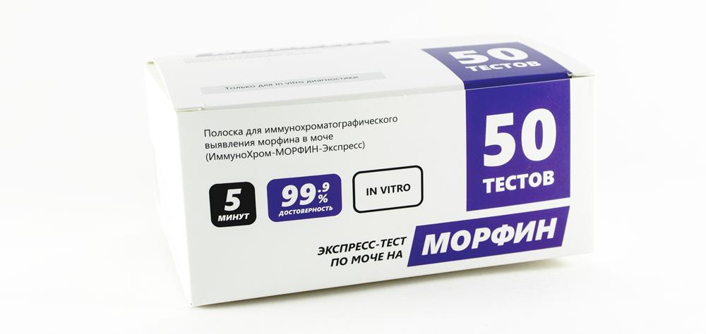 Тест-полоска «ИммуноХром-МОРФИН-Экспресс» показывает положительный результат (одна полоска в контрольной зоне) уже при наличии в анализе более 300 нг/мл морфина (морфия) и его метаболитов. Срок выявления наркотика после его употребления — от 1 до 3 дней (например, доза морфина 20 мг внутривенно будет определяться в течение 2 суток).
