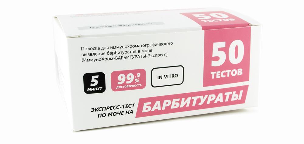 Полоска ИммуноХром-БАРБИТУРАТЫ-Экспресс предназначена для in vitro одноэтапного быстрого качественного определения барбитуратов и/или их метаболитов в моче человека в клинической практике и для самоконтроля методом иммунохроматографического анализа. Результат определения с помощью полоски ИммуноХромБАРБИТУРАТЫ-Экспресс следует рассматривать как предварительный. Для подтверждения положительных результатов рекомендуется использовать метод газовой хроматографии/массспектрометрии (ГХ/МС).