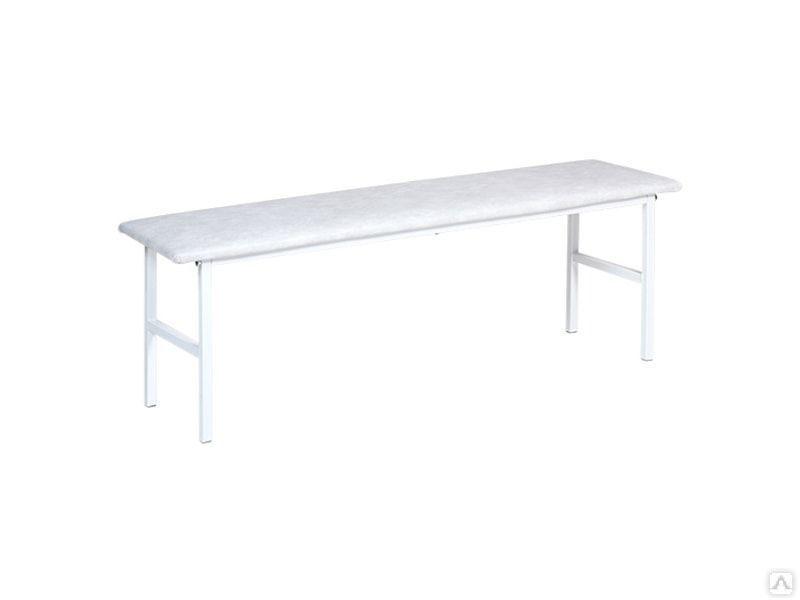 Банкетка без спинки предназначена для эксплуатации в помещениях различной направленности. Каркас банкетки изготовлен из стальных труб. Сидение из ДСП обтянуто поролоном и искусственной кожей серого цвета. Подлокотники и спинка в этой модели не предусмотрены. Под сидением находятся две поперечных планки, соединяющие боковые опоры. Конструкция разборная, предусмотрена инструкция по сборке. Поставляется банкетка в упаковке из гофрокартона
