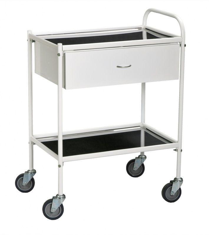 Каркас столика с ящиком: сварная конструкция из стальной трубы круглого сечения и металлического листа, покрытых полимерно-порошковой краской, 2 полки – нержавеющая сталь 0,8 мм