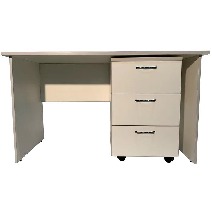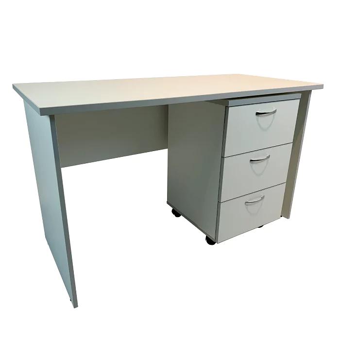 Стол имеет подкатную тумбу с 3-мя выдвижными ящиками на роликовых направляющих, размеры тумбы — 368х412х617 мм